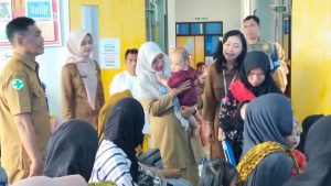 Wabup UNA bersama Ketua TP PKK Lobar memantau secara langsung proses pemeriksaan yang meliputi pengukuran berat badan, tinggi badan, lingkar kepala, serta pemantauan status gizi dan tumbuh kembang anak.